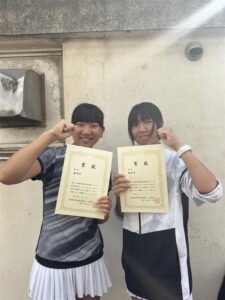 女子硬式テニス部が、9月15日及び23日に開催された東京都高等学校新人テニス選手権大会に出場し、片平・吉池ペアと淀野・小磯ペアが本戦に進出(東京都ベスト48相当)することが決まり、両ペアとも優秀賞をいただきました。本戦は9月27日に開催されました。