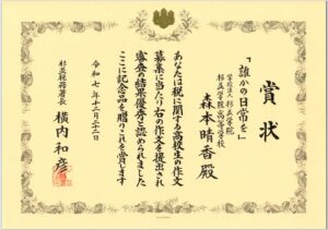 本校生徒が「税に関する高校生の作文」で杉並税務署長賞をいただきました